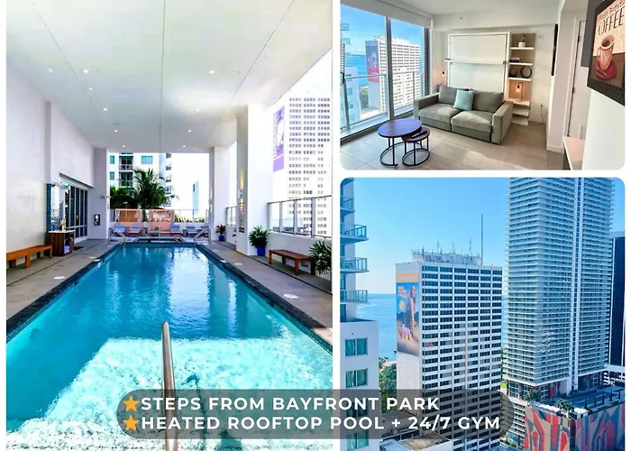Doté d'une piscine, Sky-High Oasis Large Studio Pool & Gym Miami de 41 m² est situé à 5 minutes à pied de la Église du Gesù de Miami. L'appartement est équipée d'une terrasse avec vue sur la ville.